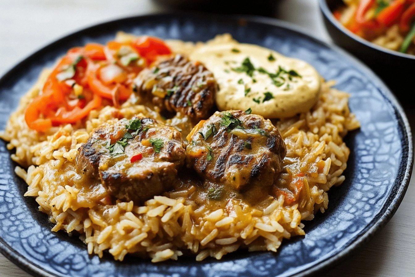 Picture this: the beef sears with a crackle that sounds like applause, the peppercorns release a spicy perfume that lingers in the air, and the butter melts into a silky sheen that coats the meat like a velvet robe. The garlic releases its warmth, mingling with the rich beef stock to create a sauce that glistens like liquid gold. The rice, meanwhile, soaks up every drop of that luscious sauce, turning each grain into a bite of comfort. I can almost hear the sizzling, feel the heat rise, taste the buttery crunch, and smell the fresh parsley that will finish the dish with a bright, herbaceous note.