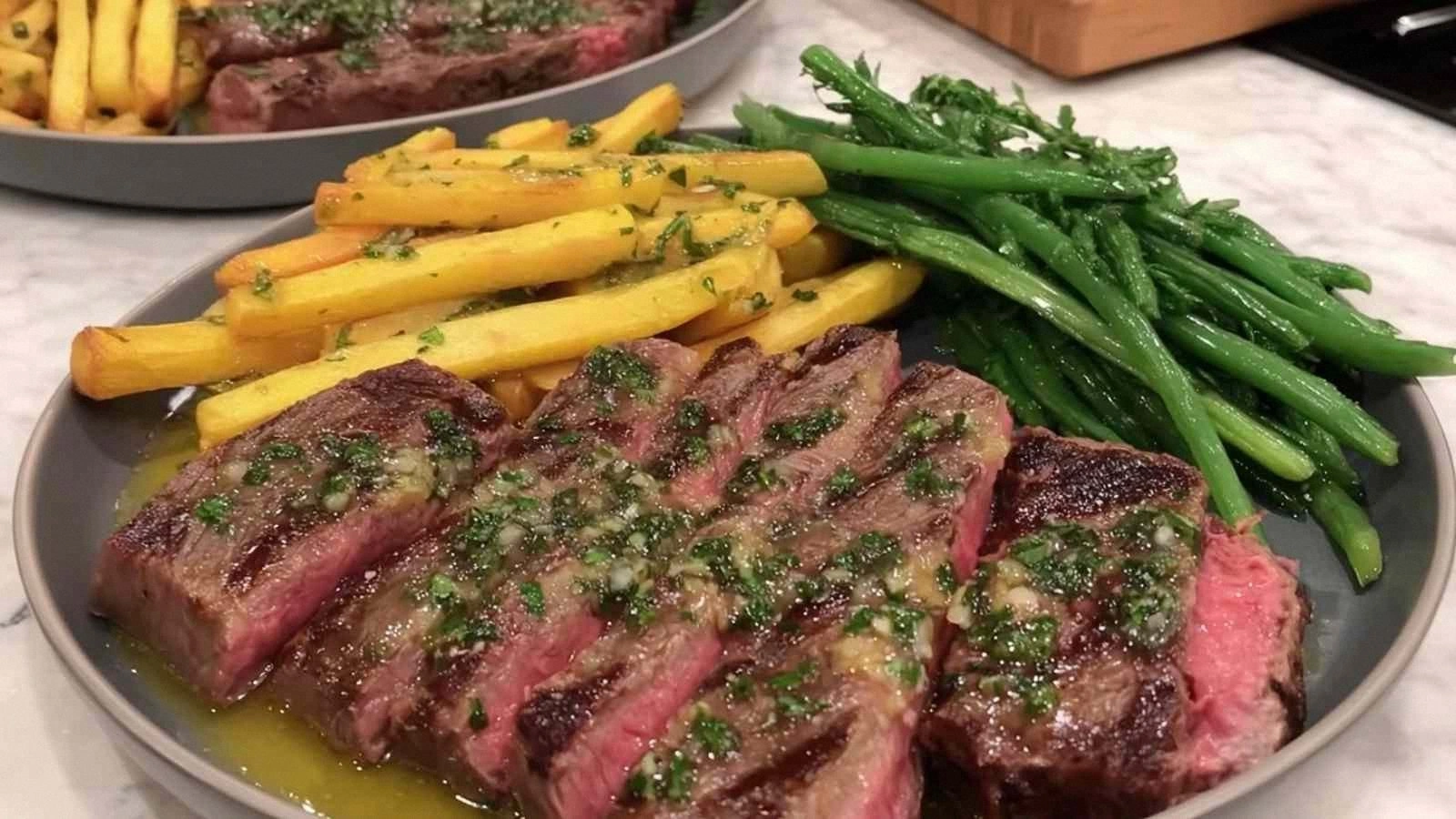 I dare you to taste this and not go back for seconds—once you’ve had the first bite, the second will feel like a betrayal of the first. Most recipes get this completely wrong, but here we’re talking about a steak that practically melts in your mouth and fries that are crisp on the outside and tender on the inside. The secret sauce? A truffle butter that coats the steak like velvet, and a chimichurri that sings with fresh herbs. The result is a dish that’s both comforting and adventurous, a crowd‑pleaser that will have everyone asking for the recipe.